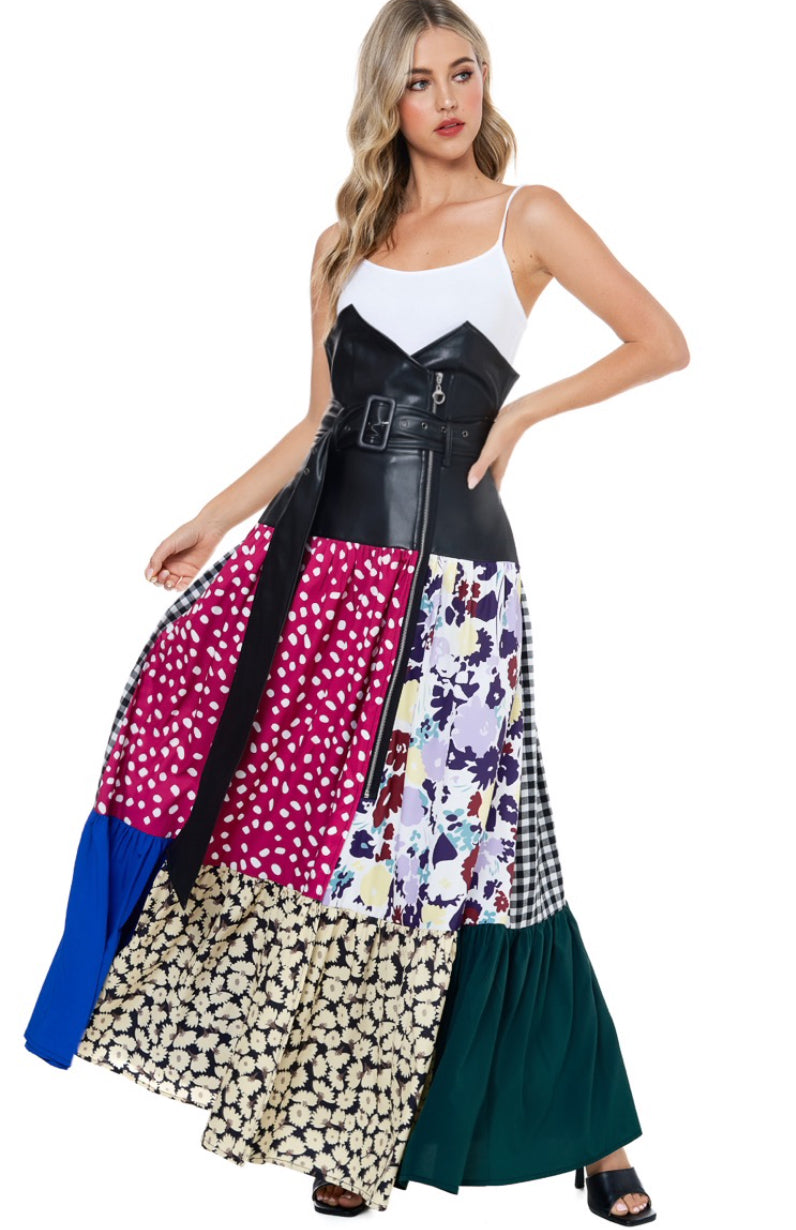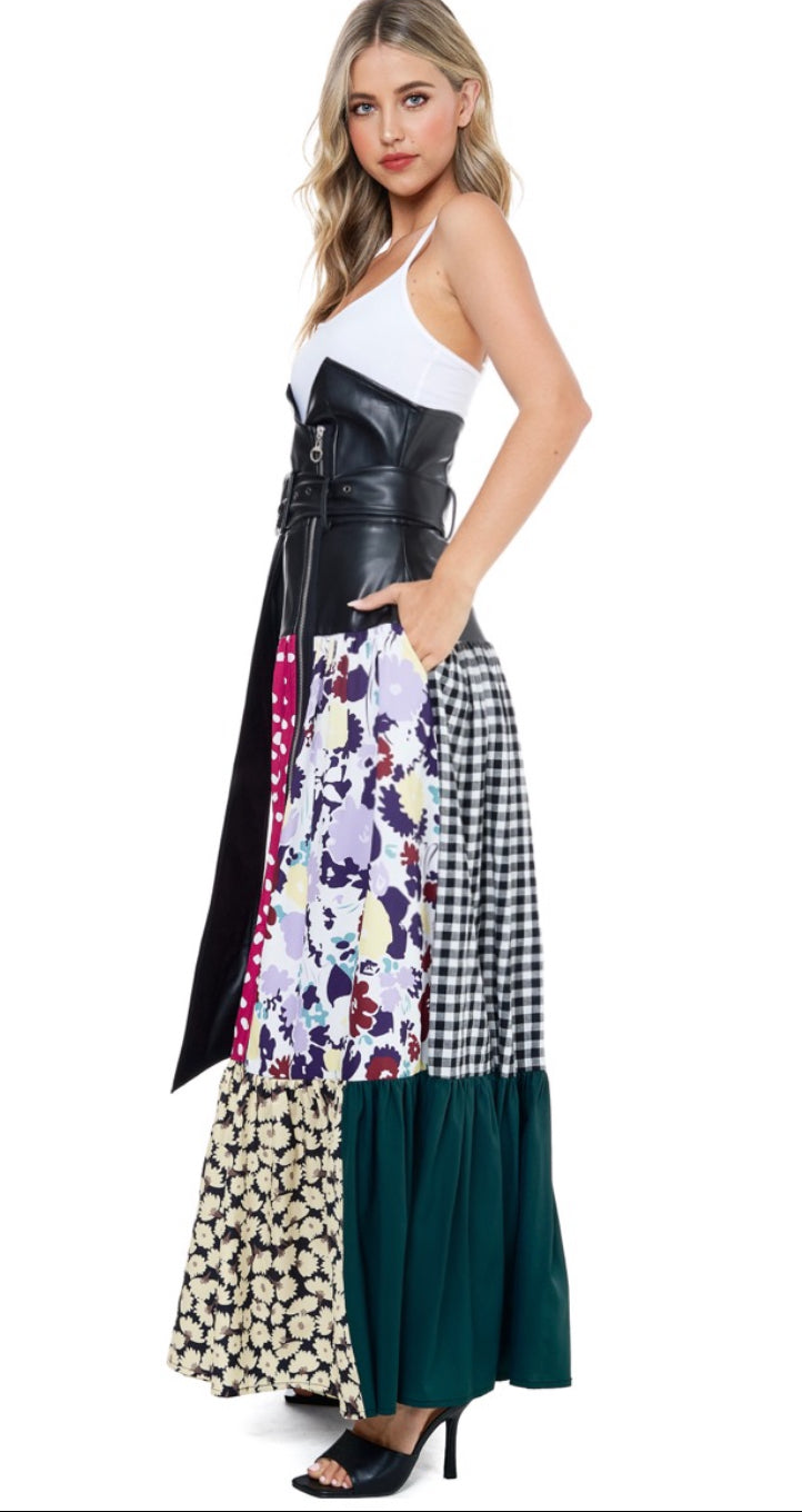 Not just high-waisted—commanding. The Corset Code Skirt fuses the drama of a structured corset with the flow of a sweeping maxi silhouette. Crafted in luxe vegan leather, it features a zip-up bodice-style waistline that rises just under the bust, a sculpting belt with functional pouch detail, and roomy side pockets. This is where femme meets fierce.